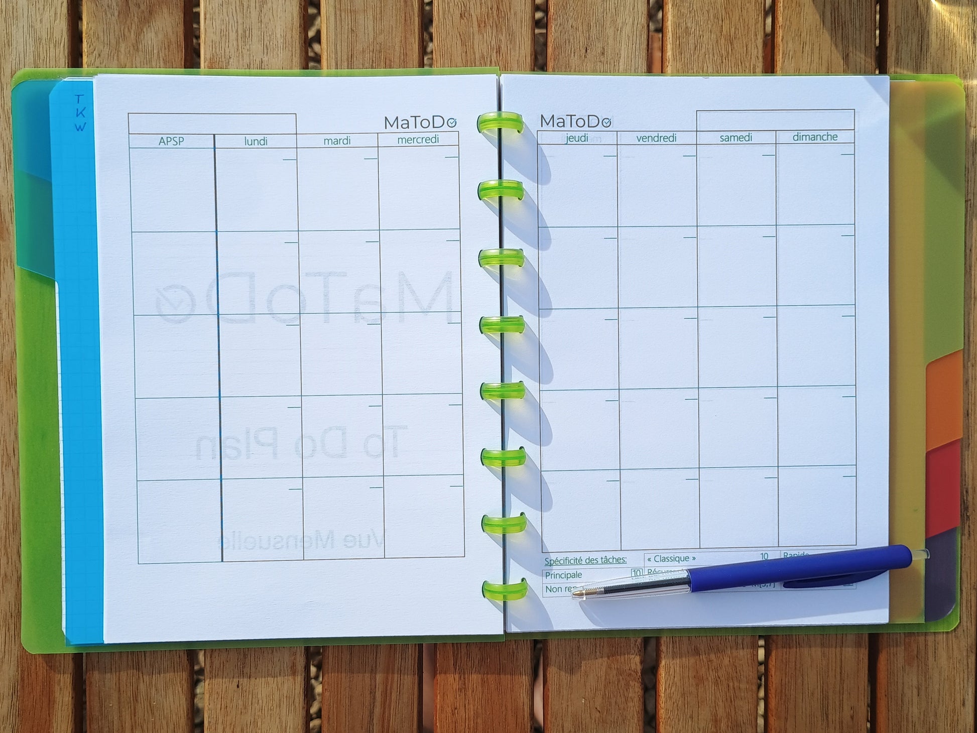 - Deux pages pour planifier les mois futurs (une page dans la version 3 mois)