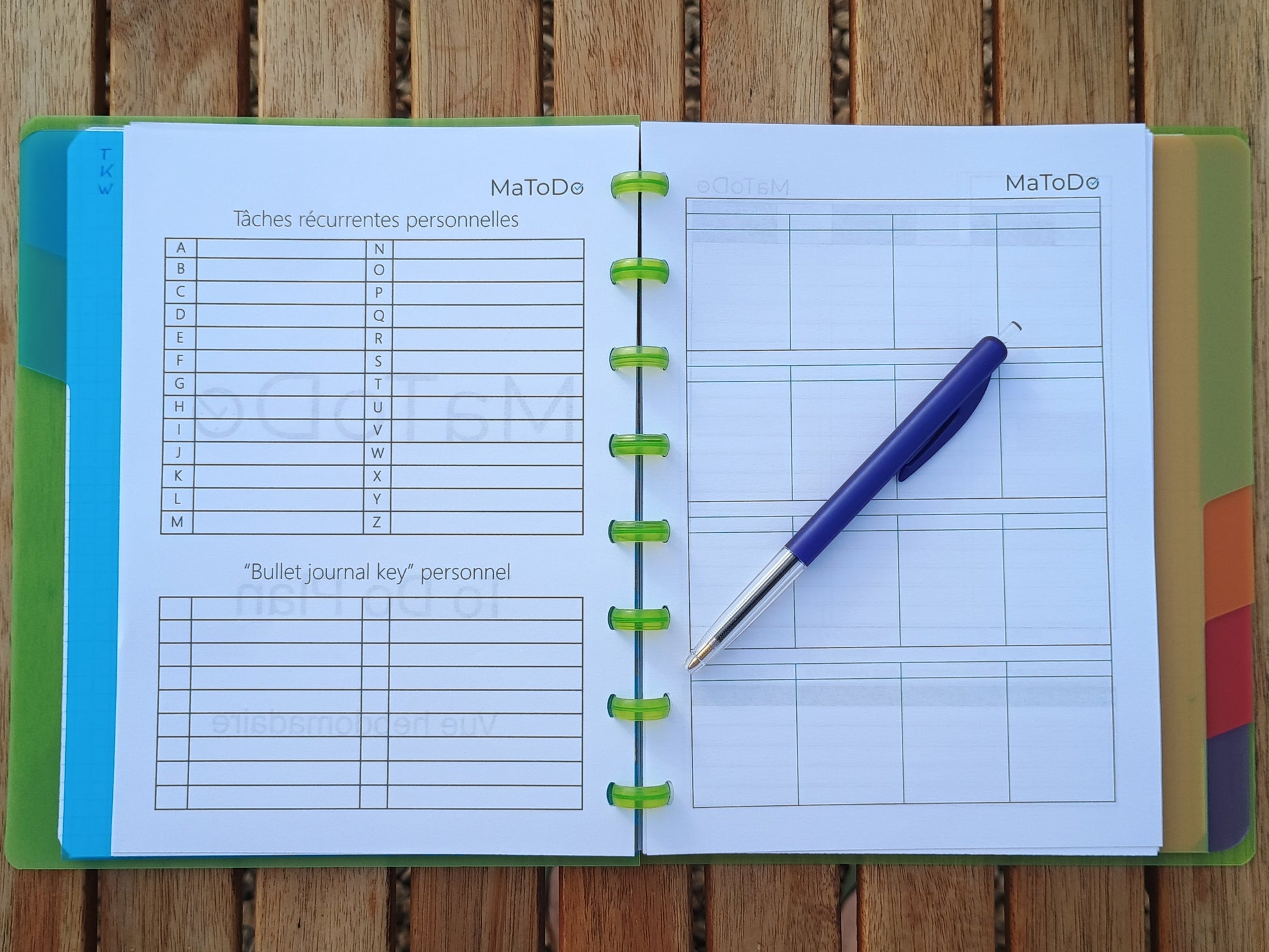 - Une fiche pour mettre vos tâches récurrentes et votre "Bullet journal Key" (non disponible en version 3 mois)