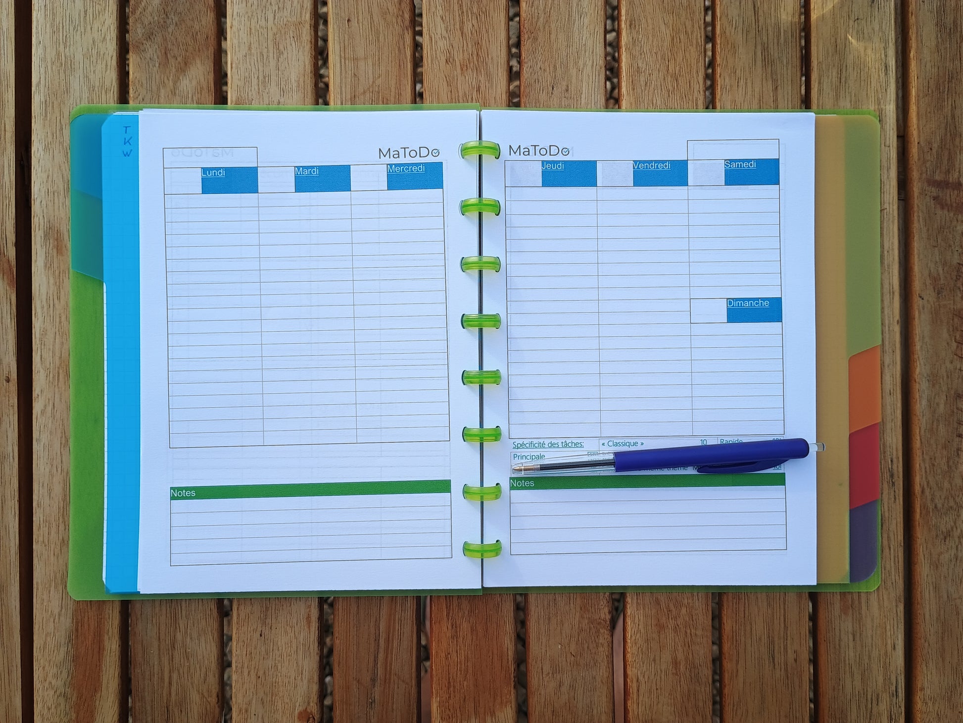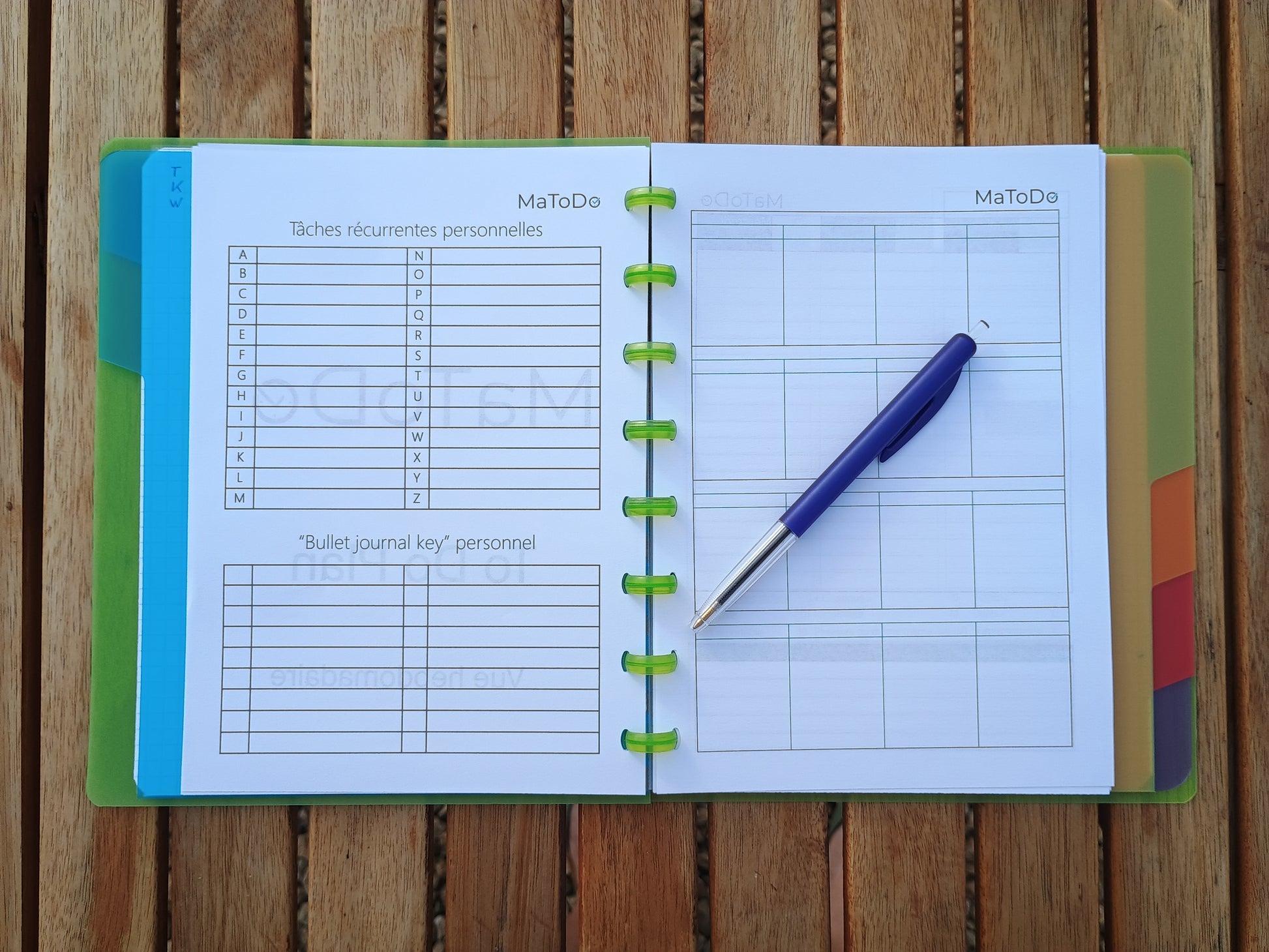 - Une fiche pour mettre vos tâches récurrentes et votre "Bullet journal Key"